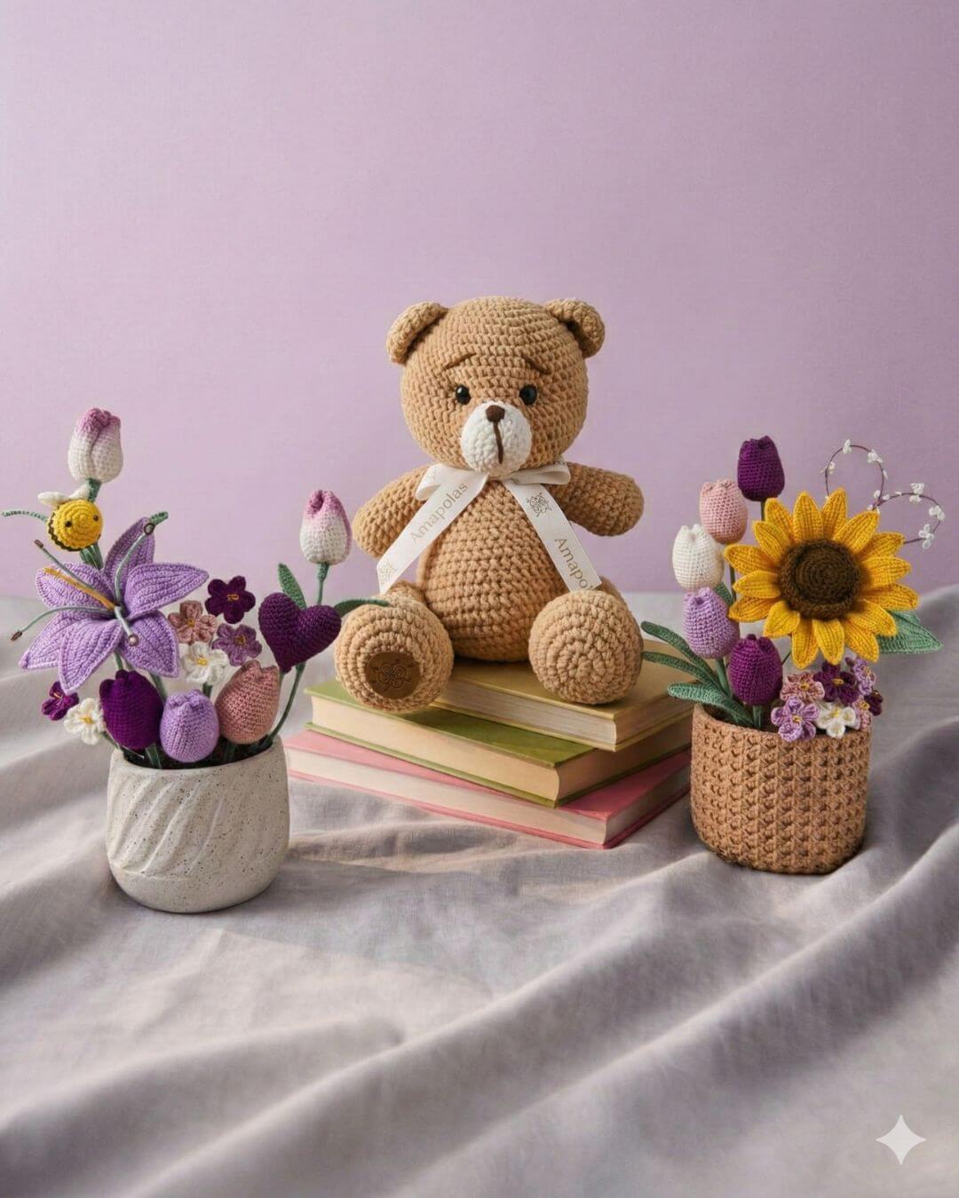 Combinamos la delicadeza de las flores con el arte del tejido para crear arreglos únicos