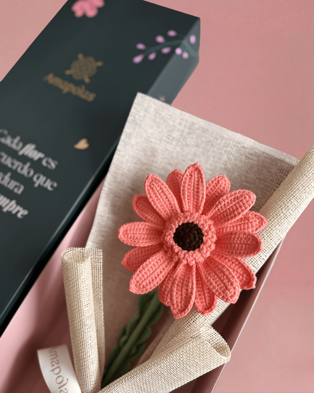 * 🌸 1 hermosa Gerbera tejida pétalo a pétalo en el color que tú elijas.