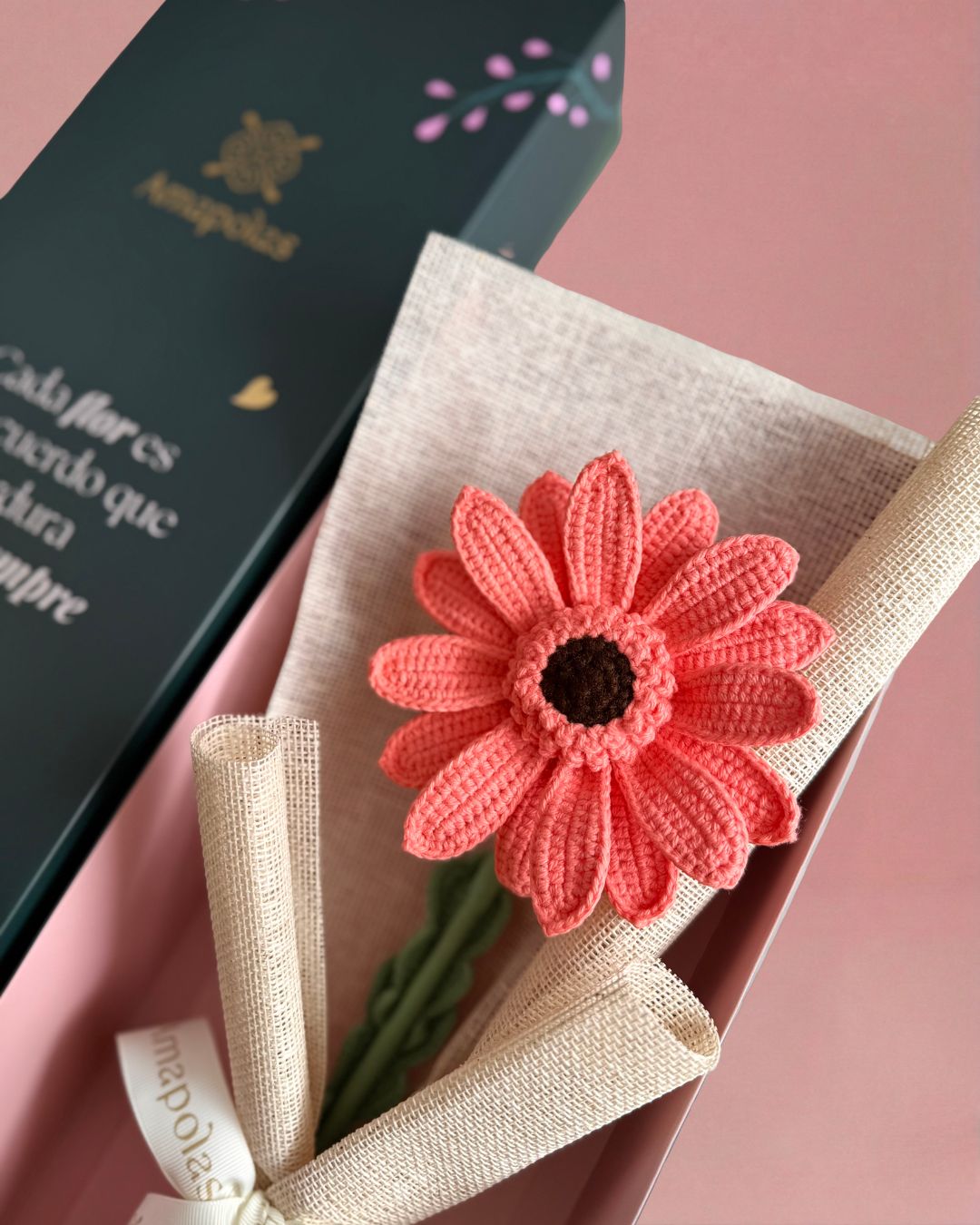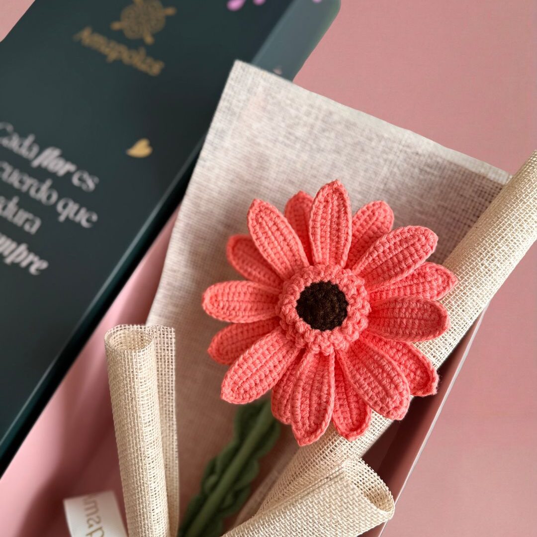 * 🌸 1 hermosa Gerbera tejida pétalo a pétalo en el color que tú elijas.