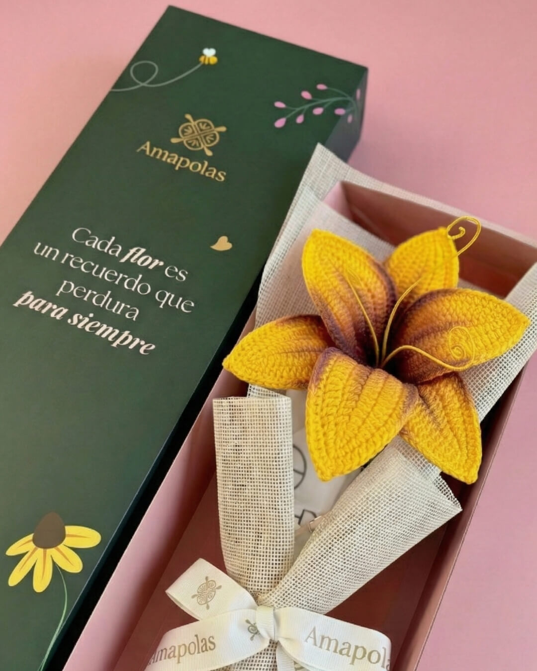 Lirio tejido a mano con temática de Rapunzel aromatizado con suaves fragancias florales, para una experiencia sensorial única. Presentado en nuestra exclusiva caja de la marca, pensada para sorprender.