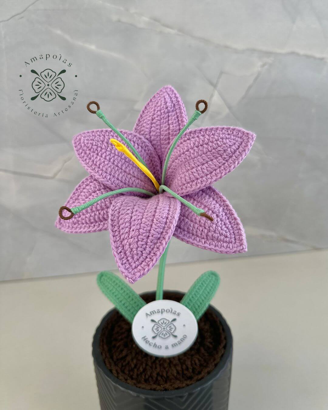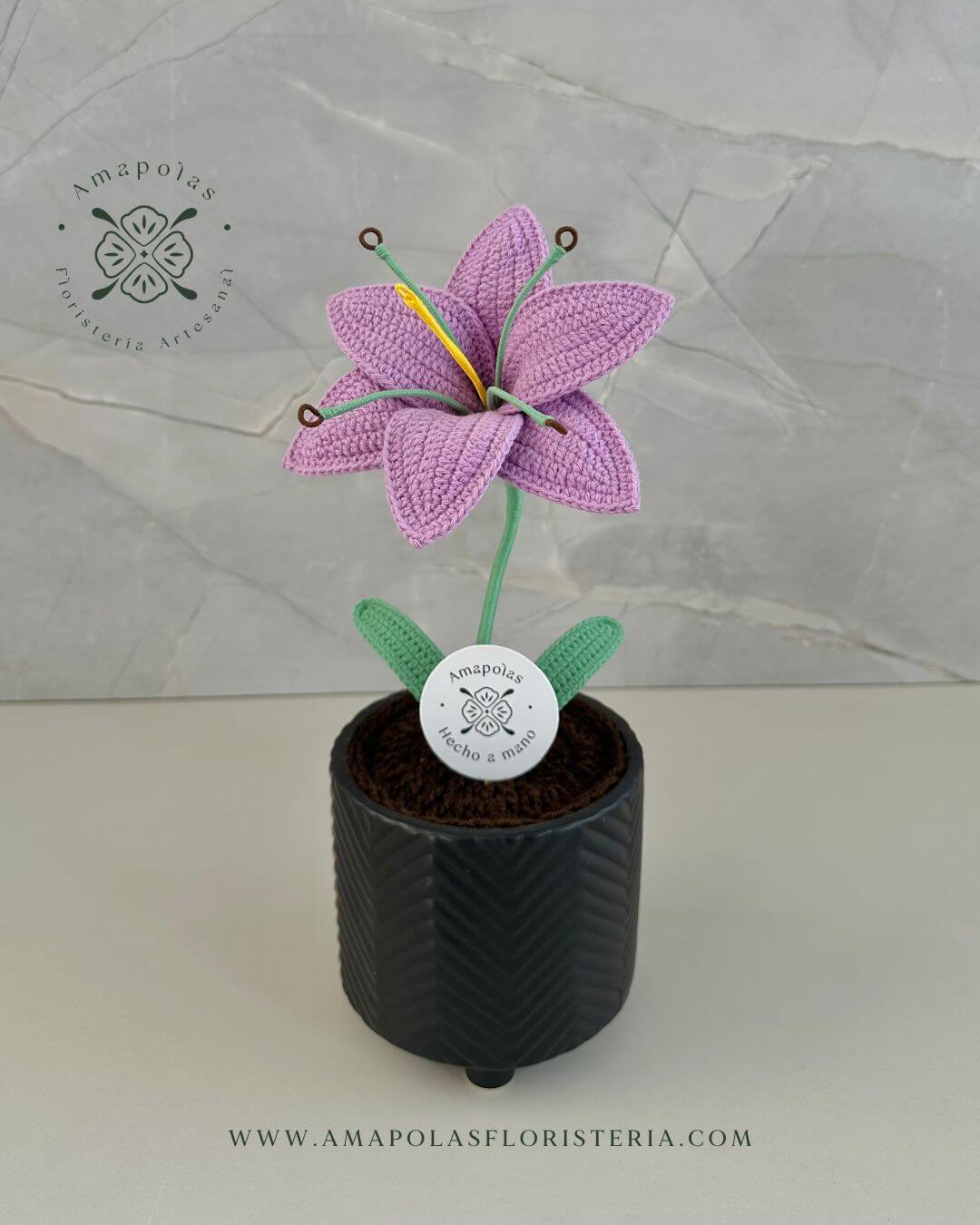 * 🌱Exquisito lirio tejido a mano en color lila.