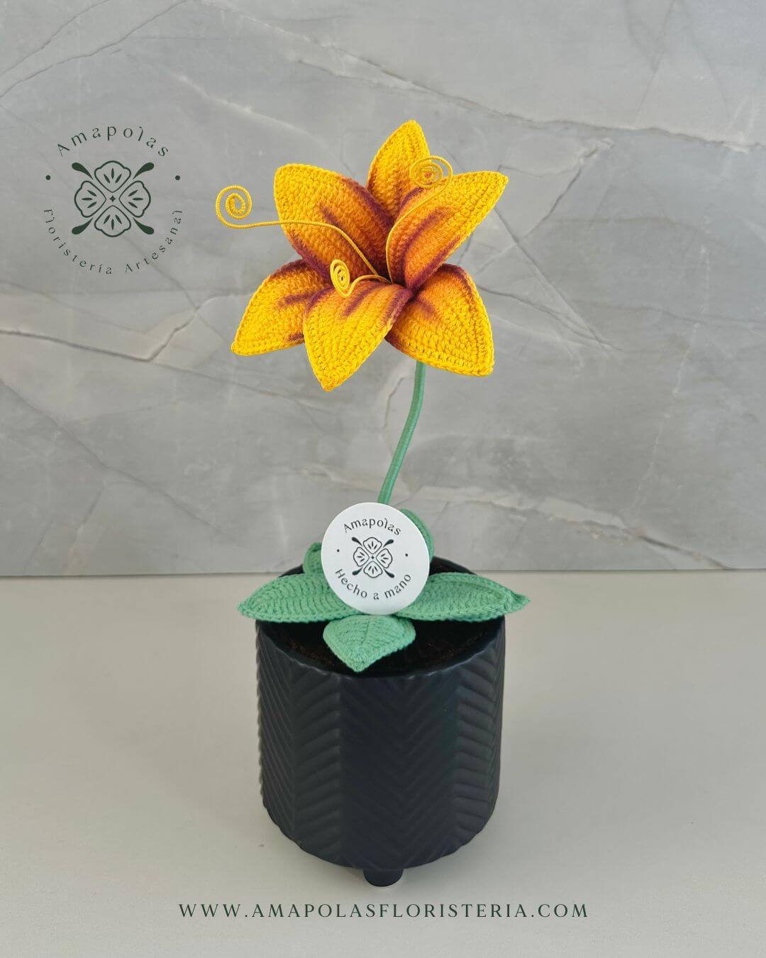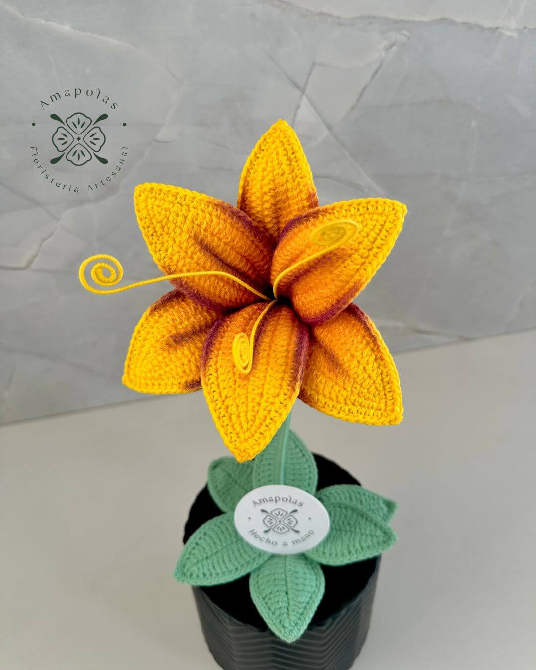 Lirio tejido a mano con temática de Rapunzel en exclusivo macetero artesanal, aromatizado con suaves fragancias florales, para una experiencia sensorial única. Presentado en nuestra exclusiva bolsa de regalo de la marca, pensada para sorprender.